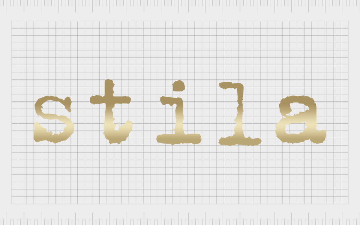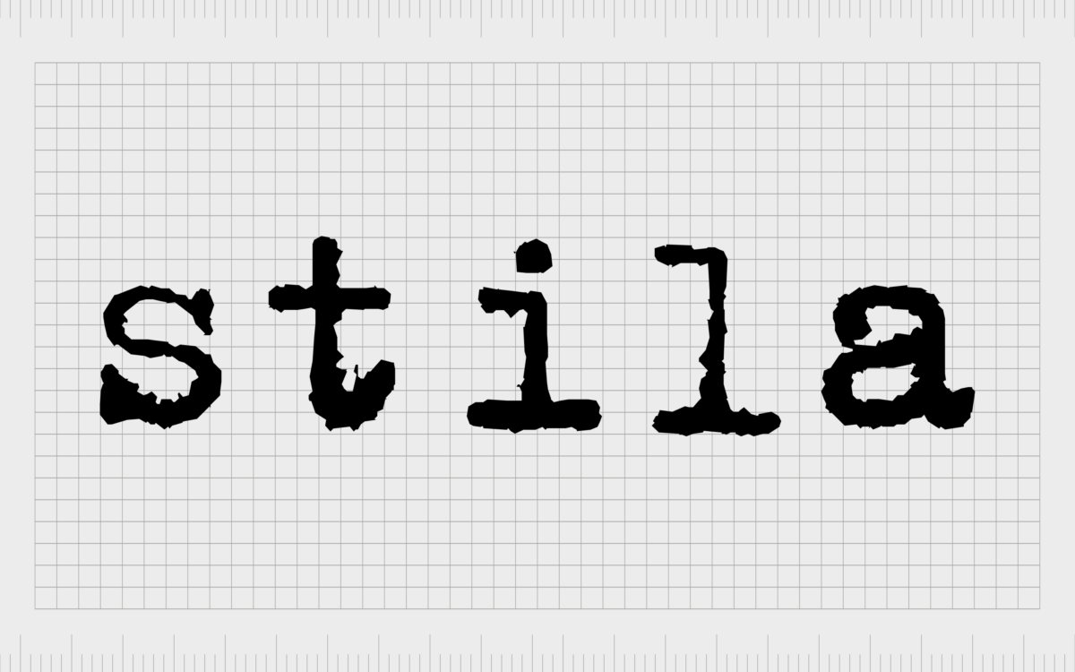 自該品牌成立以來,“Stila”一詞一直以一種粗糙的無襯線字體出現,旨在模仿老式打字機產生的字母風格。